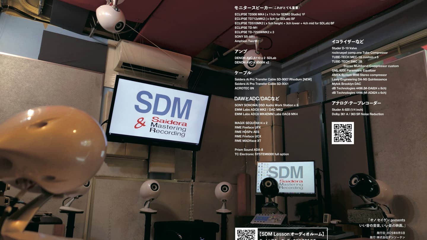 Saidera Recordsの音楽は2025年現在、Apple music などにDolby Atmos / 360 Reality Auudioとも510 曲アップされております。Saidera Mastering & Recordingは「空間オーディオ」や「立体音響」とも呼ばれるイマーシブ・オーディオ(Immersive Audio)に20年以上取り組んできた、Dolby Atmos並びに360 Reality Audio対応のスタジオです。